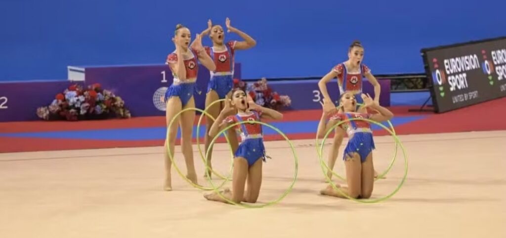 Andriely Leticia Cichovicz, Julia Anny Colere da Cruz, Amanda Manente, Alice Neves de Medeiros e Clara Beatriz Pereira Vaz, todas entre 13 e 15 anos, foram as representantes do Brasil. Na coreografia com arcos, o grupo surpreendeu ao escolher como tema o clássico do videogame Mario Bros, recebendo a nota de 25,100, a mais alta da rodada. Já na série com maças, as brasileiras se apresentaram ao som do tradicional Tico-Tico no Fubá, conquistando 23,800 pontos.Essa soma garantiu ao Brasil a prata e consolidou o país como uma potência em ascensão na ginástica rítmica de base. É a melhor colocação já obtida pelo país em edições do Mundial Júnior.