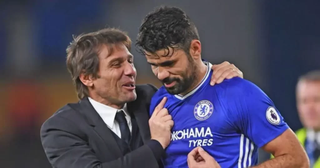 Apesar do sucesso esportivo, que culminou no título inglês sob comando do treinador italiano, Diego Costa afirmou que a convivência diária com Conte não era agradável e que o clima no vestiário não favorecia os jogadores.