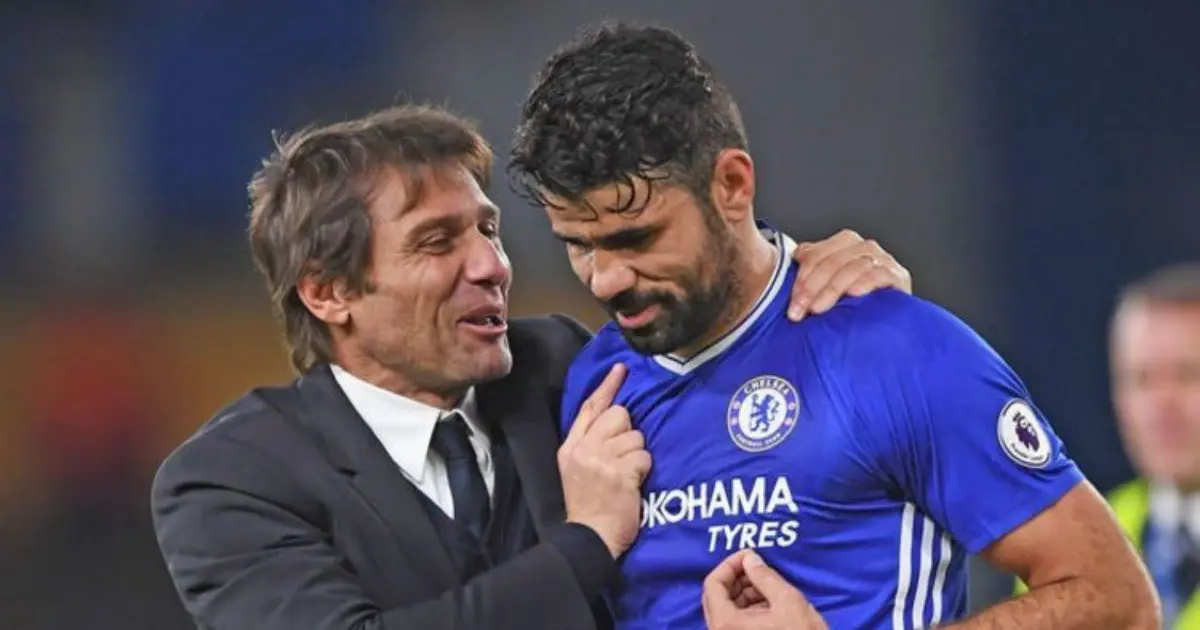 Diego Costa e Antonio Conte trabalharam juntos entre 2016 e 2018. O ponto alto da parceria aconteceu logo no primeiro ano, quando o Chelsea conquistou a Premier League com autoridade, apostando em um sistema tático diferente.