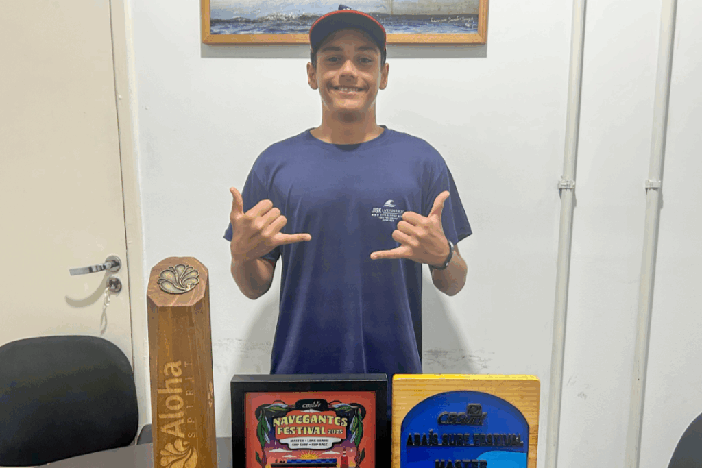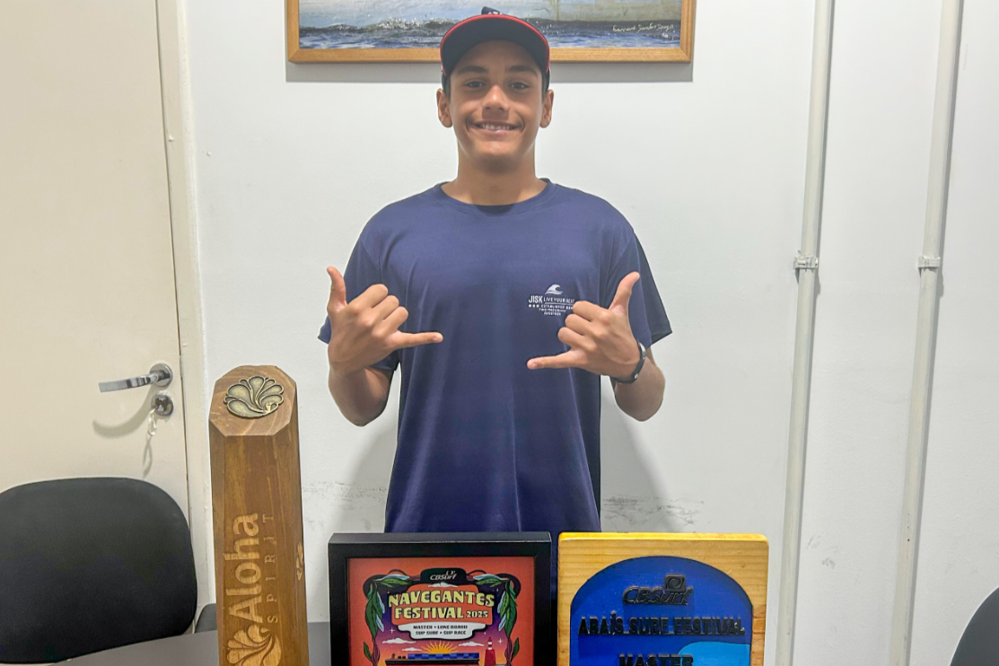 Pedro vem construindo uma trajetória impressionante no stand-up paddle. Atual líder do circuito nacional sub-18, ele conquistou, no último fim de semana, em Navegantes, no Ceará, sua terceira vitória consecutiva em etapas da temporada 2025. Antes, já havia vencido no Rio de Janeiro e em Sergipe.