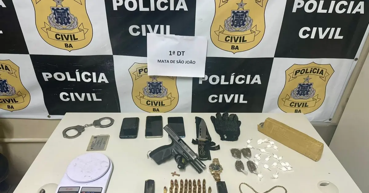 Um homem apontado como uma das lideranças de uma facção criminosa em Mata de São João, na Região Metropolitana de Salvador (RMS), foi preso nesta quarta-feira (16). Na ação, os agentes também apreenderam arma de fogo, munições e entorpecentes.