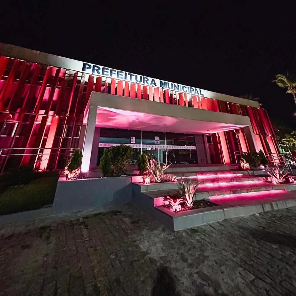A sede da Prefeitura de Mata de São João ganhou uma iluminação especial na cor rosa, na noite desta segunda-feira (15), em referência à Campanha Outubro Rosa. A iniciativa tem como objetivo reforçar a importância da prevenção e do diagnóstico precoce do câncer de mama. As luzes permanecerão acesas até o último dia do mês, sempre a partir das 18h.