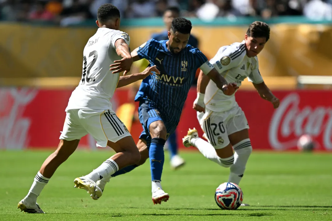 O Al-Hilal chegou já mostrando que não abaixaria a cabeça para o Real Madrid – aos nove minutos do primeiro tempo, o primeiro quase gol dos sauditas veio de um chute para fora do baiano Marcos Leonardo, após receber um passe acidental de Salem Al-Dawsari.
